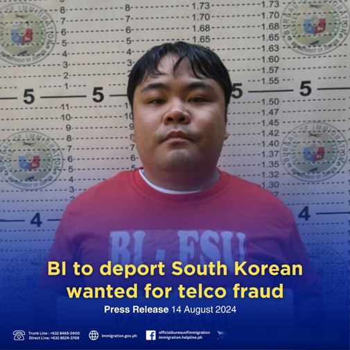 2024年8月15日,菲律宾移民局(BI)宣布,一名因电信诈骗被首尔当局通缉的韩国男子已被逮捕,并将被遣返回国。